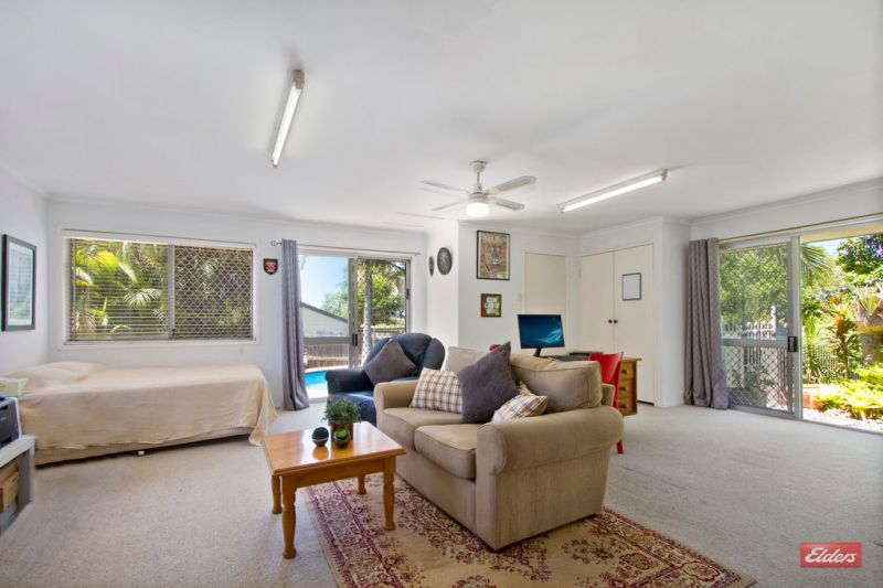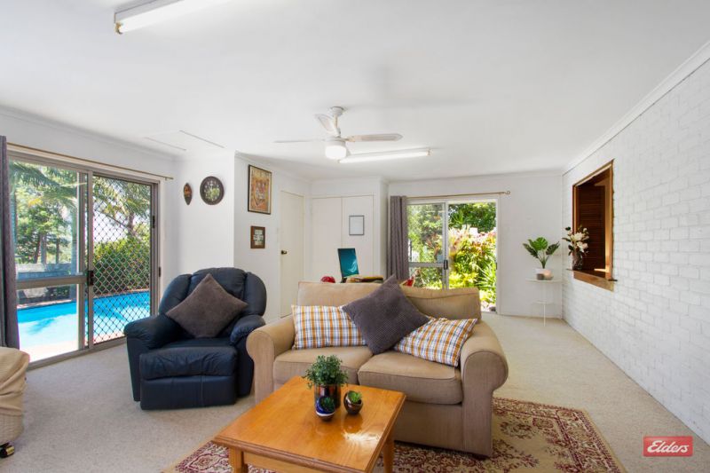 Set in a quiet suburban street alongside a park and within walking distance of Woolworths Chatswood Road is a home that has a genuine family feel. To the right of the double lock up carport is discreet entry courtyard. Inside, the home is surprisingly spacious. At one end of the floorplan are three bedrooms. At the other is a parent's retreat with ensuite and views to an inground swimming pool and established gardens.