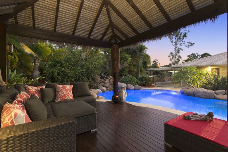 The home has an impressive history with the resort style tropical pool and Balinese Hut being used for the location of a television advertisement. Inside does not disappoint. The renovated 2 Pac kitchen has genuine granite bench tops and has been fitted with induction cook top and quality appliances. There are three living areas, including a billiard room, intimate media room and open plan kitchen, living and dining. Both sides of the house are skirted with covered entertainment zones. Great for parties!